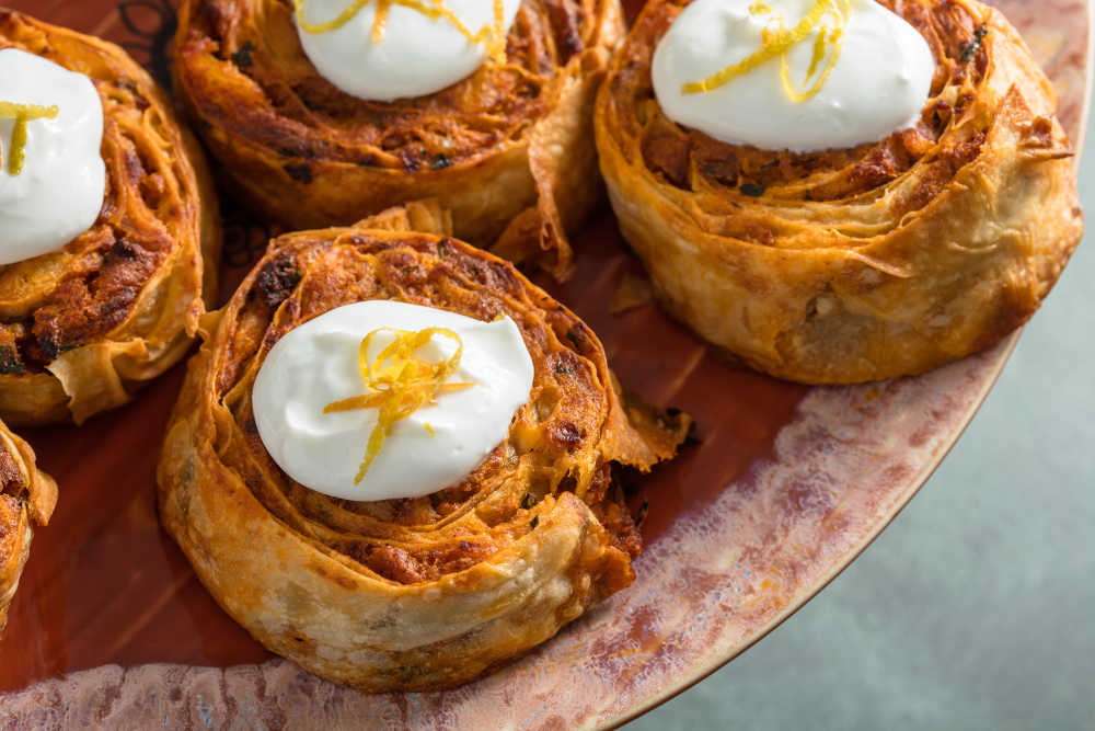 Böreklerinizin üzerlerine süzme yoğurttan koyun.