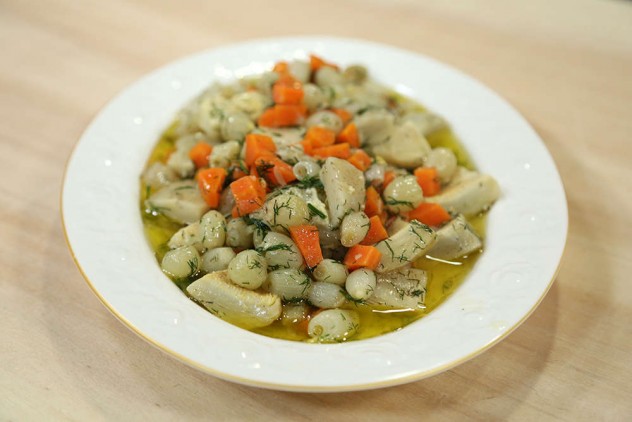 Pişen enginarlarınızın üzerine dereotu ve zeytinyağı gezdirerek servis edin.