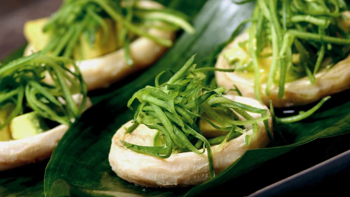 Pişen enginarlar servis tabağına alınır. Üzerine marine edilmiş avokadolar eklenerek sunum yapılır.
