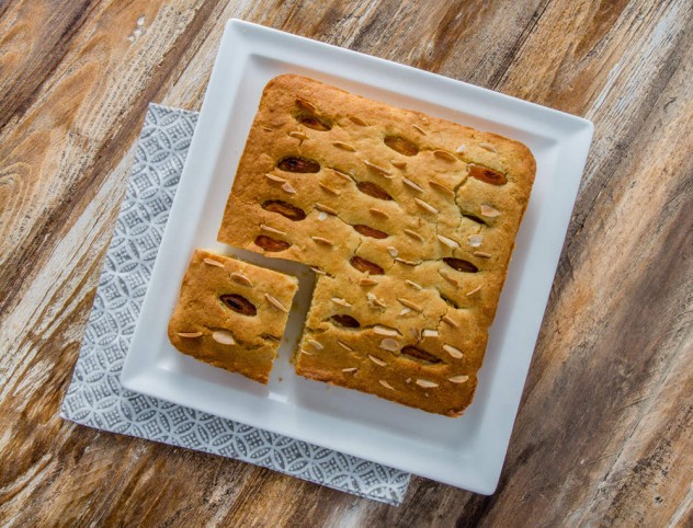 Kayısıları ikiye bölün ve kek hamurunuzun üzerine sık bir şekilde dizin.