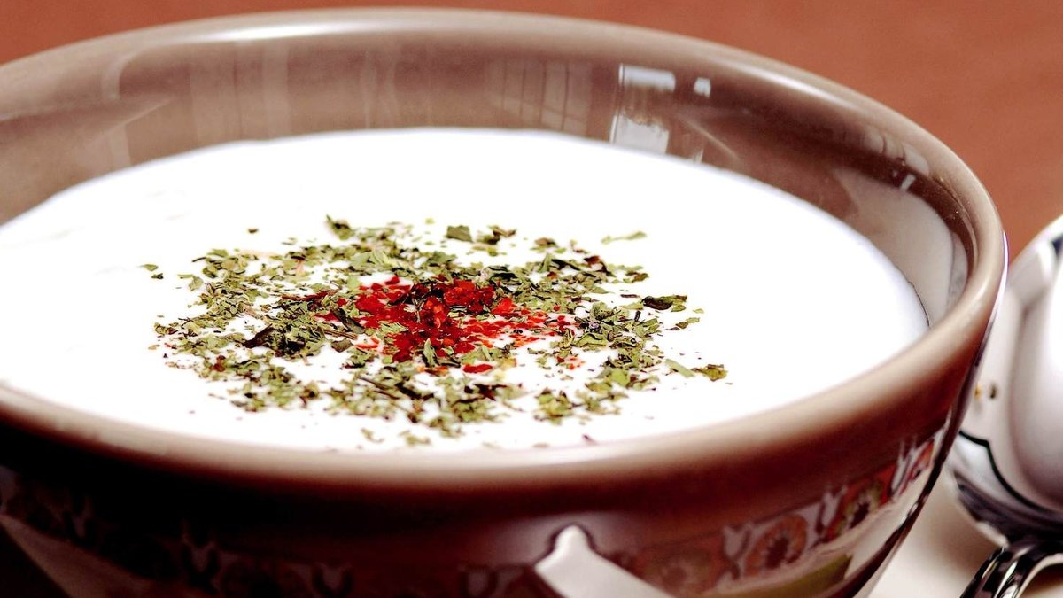 Ayrı bir kapta yoğurt ve suyu iyice çırpın.