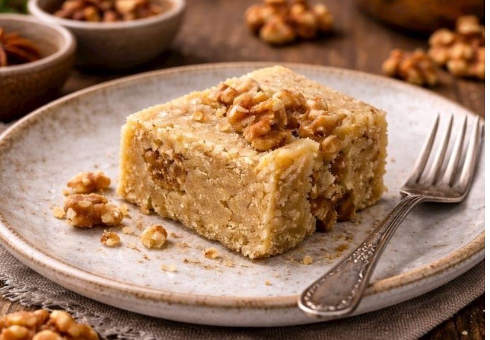 Buzdolabında dinlendirildikten sonra dilimlenen ceviz ezmesi, hem lezzeti hem de pratik hazırlanışıyla sofralarda yerini alır.