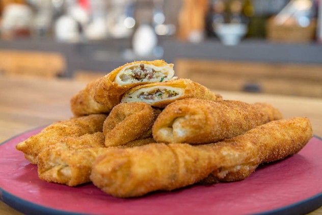 Uç kısmını sıvı karışım ile yapıştırıp önce yumurta sonra galeta ununa bulayıp derin yağda kızartıp servis edin.
