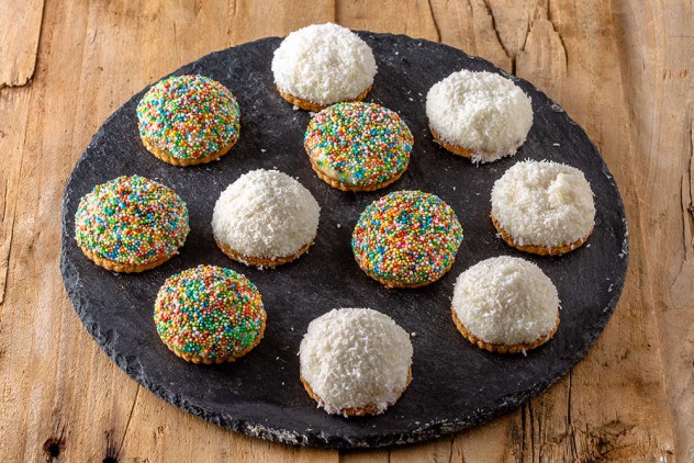 Ardından hindistan cevizine ya da renkli şekerlemeye bulayın.