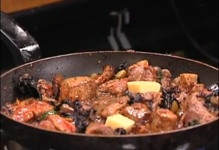 Üzerine 20 gr tereyağını ve kırmızı şarabı ilave edin. Kırmızı şarabın alkolü alev alıp karışımınızı alevlendirecektir.