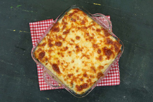Cam fırın kabınızın en altına beşamel sostan biraz dökün ve yayın, ardından lazanya yapraklarını serin. Beşamel sos, peynirli iç harç ve lazanya yaprağı şeklinde bitene kadar tekrarlayın. En üstü lazanya yaprağıyla kapatın. Kalan beşamel sosu üzerine yayın. Kaşar peyniri serpin ve 180 derecede önceden ısıtılmış fırında 30 – 35 dakika pişirin.