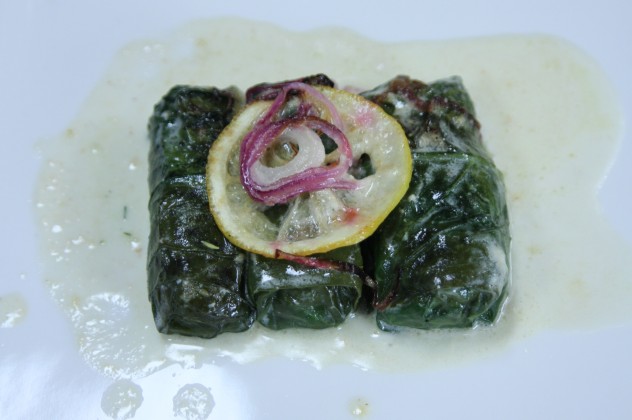 Kalan krema, toz zencefil, toz sarımsak ve defne yaprağını bir kapta iyice çırpın ve dolmaların üzerine dökün. Üzerine dilim limon ve kırmızı soğan halkalarını dizin ve 180 derecelik fırında 25 – 30 dakika kadar pişirin.