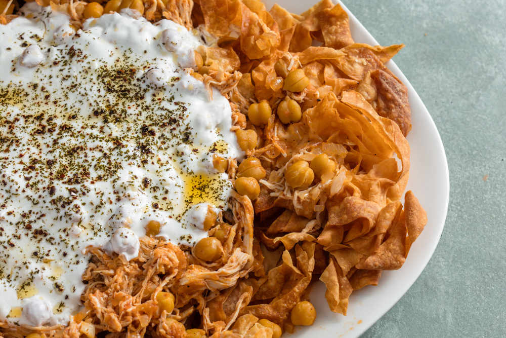 Üzerine nohutlu tavuk harcını yayın.