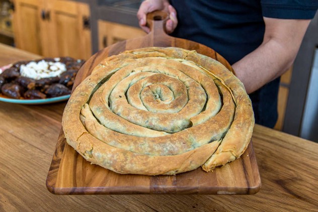 Hamurların hepsini aynı şekilde hazırlayın ve ortaya koyduğunuz böreğin etrafına dolayın.