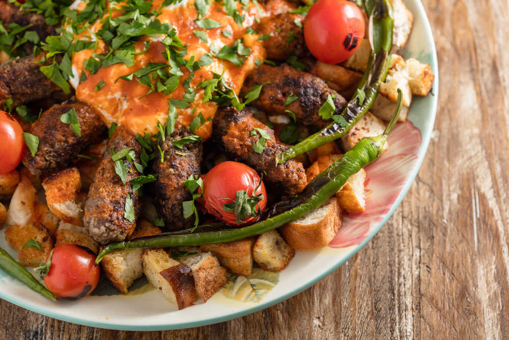 Üzerlerine 1 – 2 yemek kaşığı süzme yoğurt koyun ve hazırladığınız salçalı sosu her şeyin üzerine gezdirin.