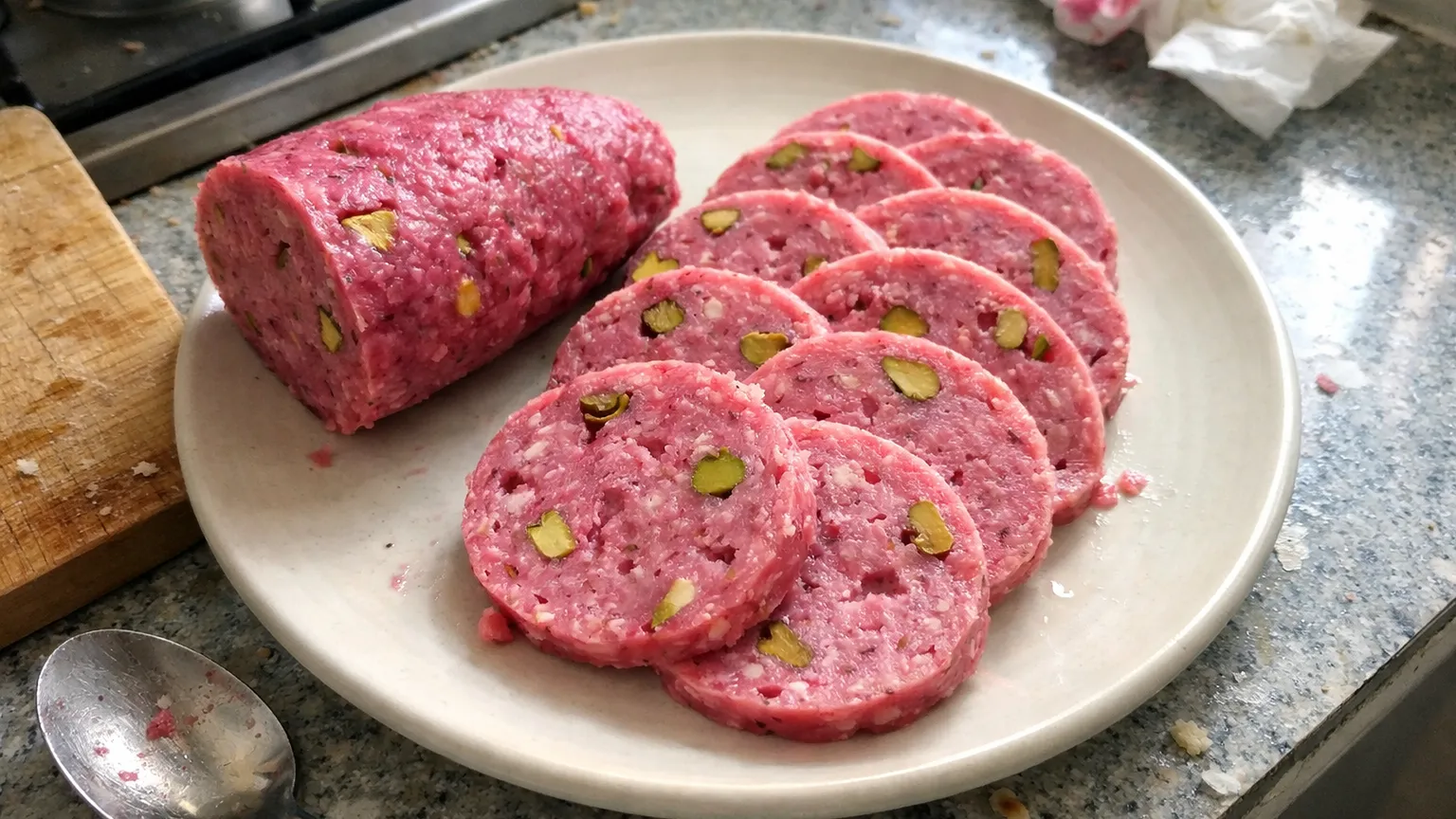 Salam, farklı ülkelerde çeşitli etlerle yapılan bir şarküteri ürünü olsa da ev mutfağında amaç genellikle içeriği kontrol etmek ve daha sade bir lezzet yakalamaktır. Bu tarifte pancar, ürüne iştah açıcı bir renk verir; sirke ise aromayı dengeler. Jelatin/agar agar kullanımı, ev yapımı salamın düzgün dilimlenmesini sağlayan temel tekniktir.