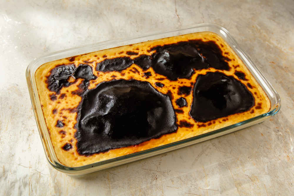 Fırınınızın üst ızgarasını açın ve helvayı fırına alıp kontrollü bir şekilde üzerinin yanmasını sağlayın.