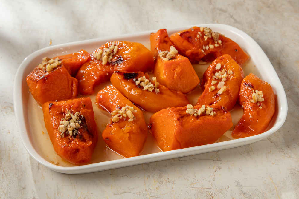 Üzerine tahin ve iri kıyılmış ceviz serperek servis edin.