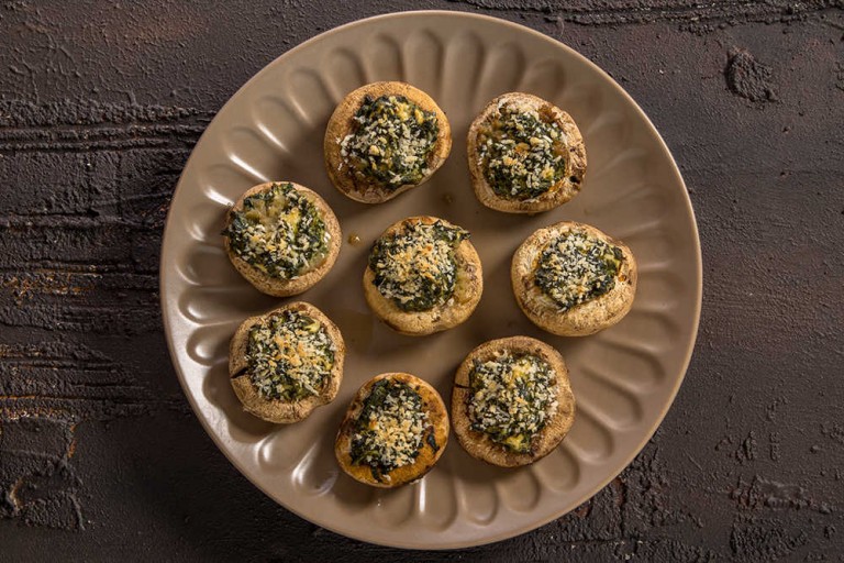 Ispanaklı karışımla mantarların ortasını doldurun, üzerlerine panko serpin ve 200 derecede önceden ısıtılmış fırında 10 – 15 dakika pişirip servis edin.