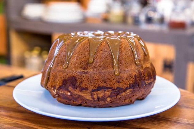 Bir çubuk yardımıyla tahinli karışımı, sade olan karışıma karıştırın ve 180 derecede önceden ısıtılmış fırında 45 – 50 dakika pişirin.