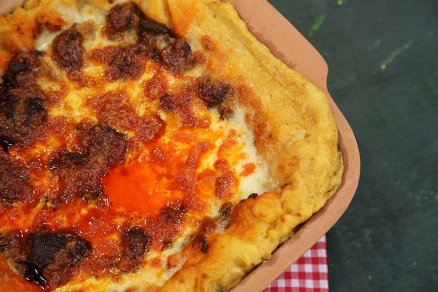 Bir güveç kabının içine hazırladığınız patates püresini yayın ve ortasına bir çukur açın. açtığınız çukurun içine hazırladığınız eti, üzerine de rendelediğiniz kaşar peynirini serpin ve 180 derecede önceden ısıtılmış fırında kaşarlar eriyene kadar pişirin. Sıcak servis edin.