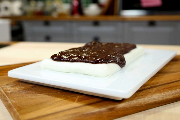 Soğuyan su muhallebinizin üzerine çikolatalı sosu yayın.