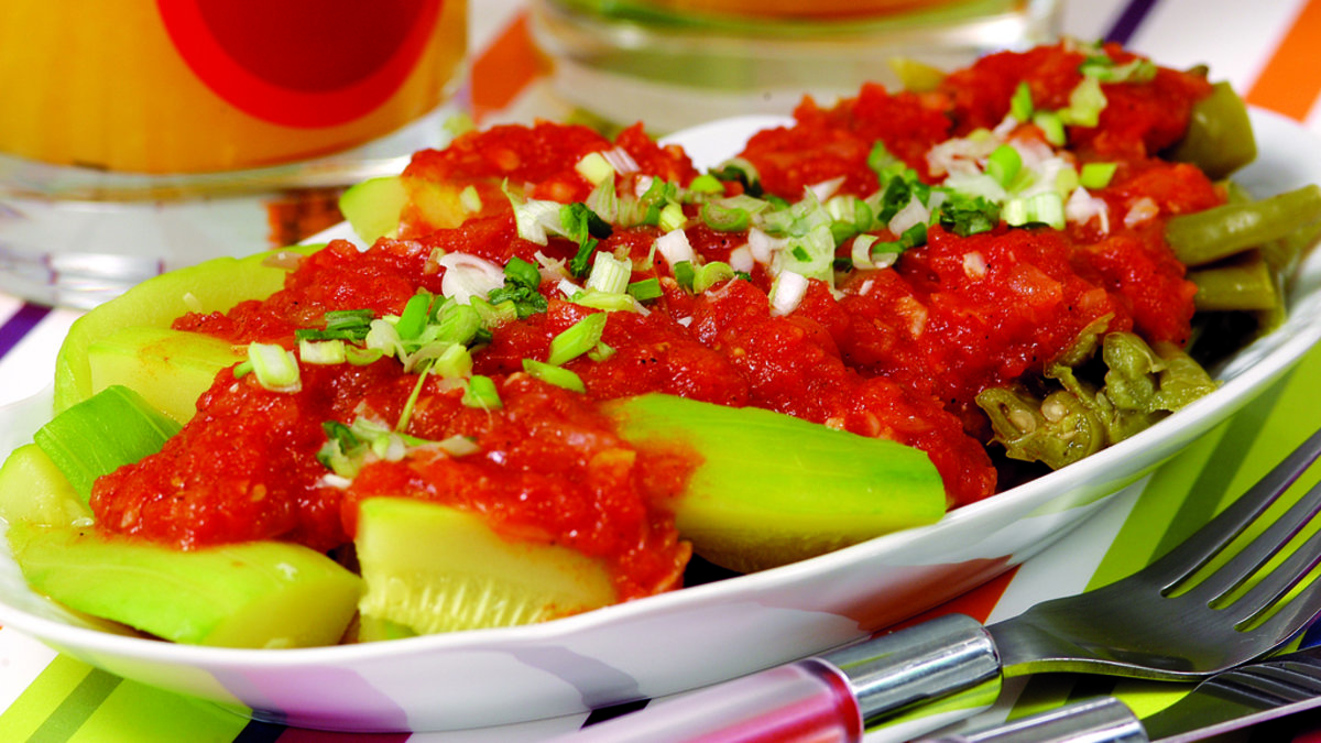 Haşlanan kabak ve biberleri iri parçalar halinde doğrayın. Hazırladığınız sıcak sosu üzerine gezdirin. Ilık ya da soğuk olarak servis edebilirsiniz.