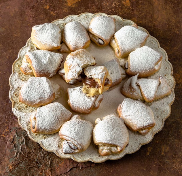 Bir tane üçgeni önünüze alın ve içerisine kakaolu fındık kreması yerleştirip, kenarlardan kapatarak sarın.