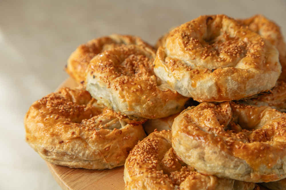 Bütün yufkaları bu şekilde hazırlayın ve fırın kağıdı serdiğiniz fırın tepsisine börekleri dizin.