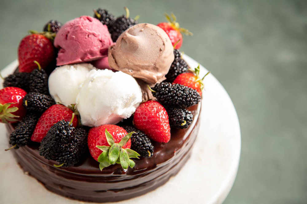 Kenar kısımlarını çilek ve karadutla süsleyerek servis edin.