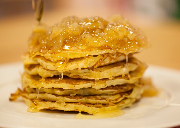 Hazırladığınız pankekleri üst üste dizin ve elma sosunu üzerine gezdirin.
