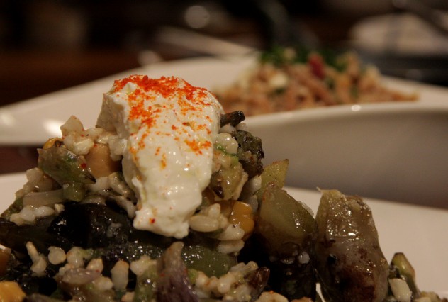 -Haşlanmış buğday ve nohutu da ekleyin, hepsini harmanlayın.