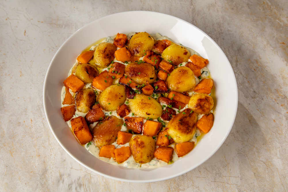 Kaynayan suyun içerisine kabuklarını soyduğunuz bebek patatesleri alın ve 10 – 12 dakika haşlayın.