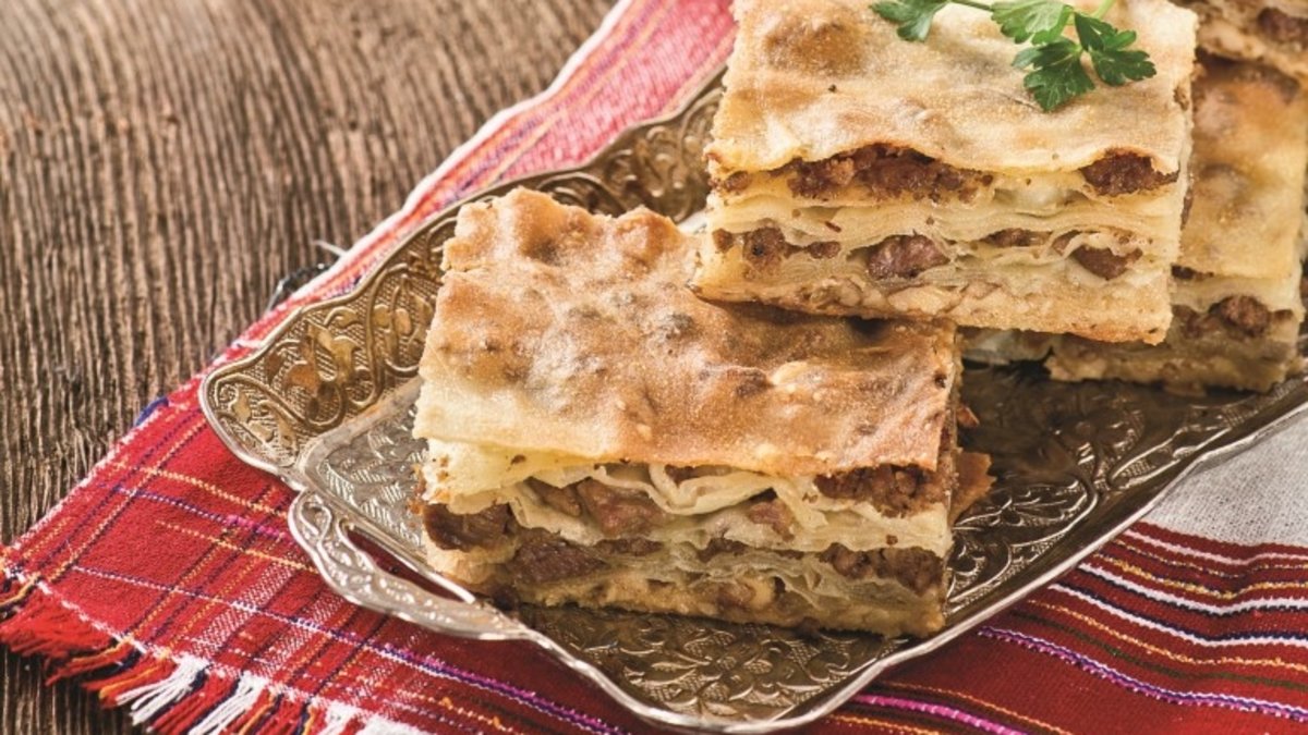 Portakal büyüklüğündeki bezelerden biri, unlu zeminde tepsi büyüklüğünde açılır ve yağlanmış tepsiye yerleştirilir. Üzerine ayçiçeği yağı gezdirilir, ardından kavut ve ceviz serpilir.
