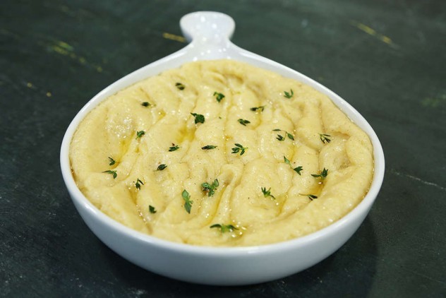 Tereyağı, krema, tuz, ak biber ve muskat rendesini ekleyip, bir spatula yardımıyla ezerek karıştırın. Pürüzsüz bir hale geldiğinde rendelediğiniz kaşar peynirini ekleyin iyice karıştırın. Ardından ateşten alın ve sıcak servis edin.