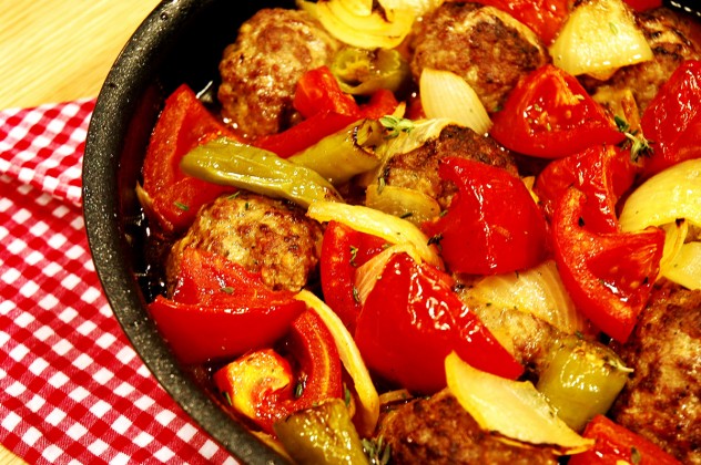 Domates kendini tamamen bırakmadan tuz karabiber ekleyip köfteleri tavanın içine alın, 200 derecelik fırında 1-15 dakika daha pişirin.