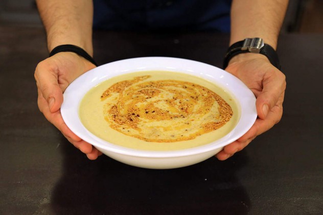 Sebzelerin tamamı iyice yumuşadıktan sonra bir el blenderi ile pürüzsüz olana kadar çekin. Ocaktan alın ve kremayı ilave edip iyice karıştırın.