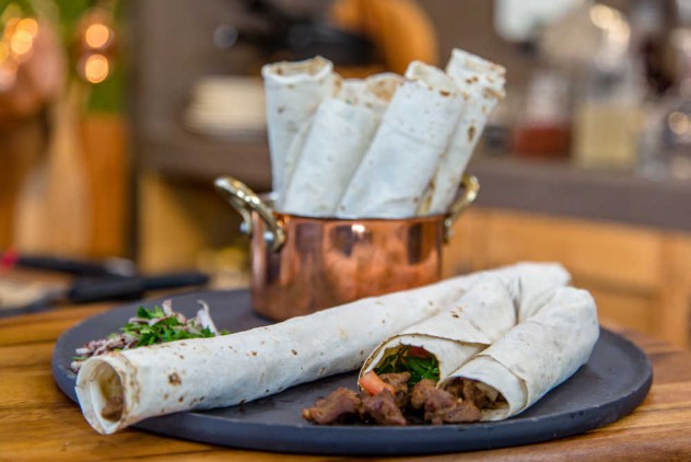 Lavaşlara, tantuninizden paylaştırın ve ince sarıp, katlayarak servis edin.