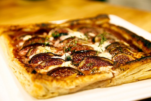 Üzerine keçi peynirlerini gezdirin, dilimlediğiniz incirleri yerleştirin, esmer şeker serpin ve son olarak taze kekikleri bütün olarak koyup 180-190 derece önceden ısıtılmış fırında 20 – 25 dakika pişirin.