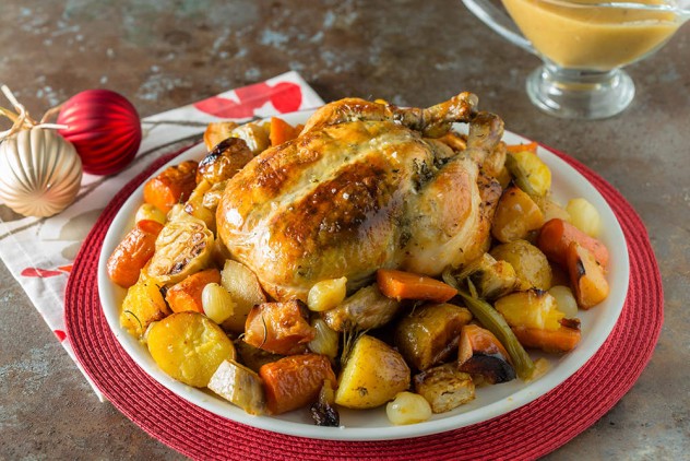 Yemek ipi ile butları ve kanatları gövdeye sabitleyecek şekilde sarıp fırın kabınızdaki telin üzerine tavuğu yerleştirip, 180 derecede önceden ısıtılmış fırında 75 – 80 dakika pişirin.