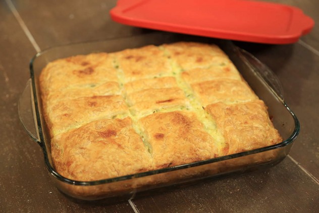 Dört adet milföyün kenar kısımlarını birleştirip kare formunu oluşturduktan sonra unlu bir tezgahta merdane yardımı ile fırın kabınızın büyüklüğünde açın. Fırın kabınızı tereyağı ile iyice yağlayın ve bu açtığınız milföyü fırın kabınızın kenarlarını da kaplayacak şekilde yerleştirin.