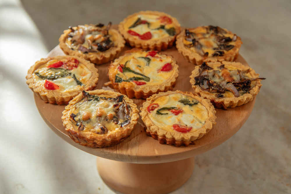 Hazırladığınız mini kişlerin üzerlerini kiş kalıbınıza göre kestiğiniz yağlı kağıtla kaplayın ve üzerlerine ağırlık olması için baklagil koyup 180 derecede önceden ısıtılmış fırında 8 dakika kör pişirme yapın.