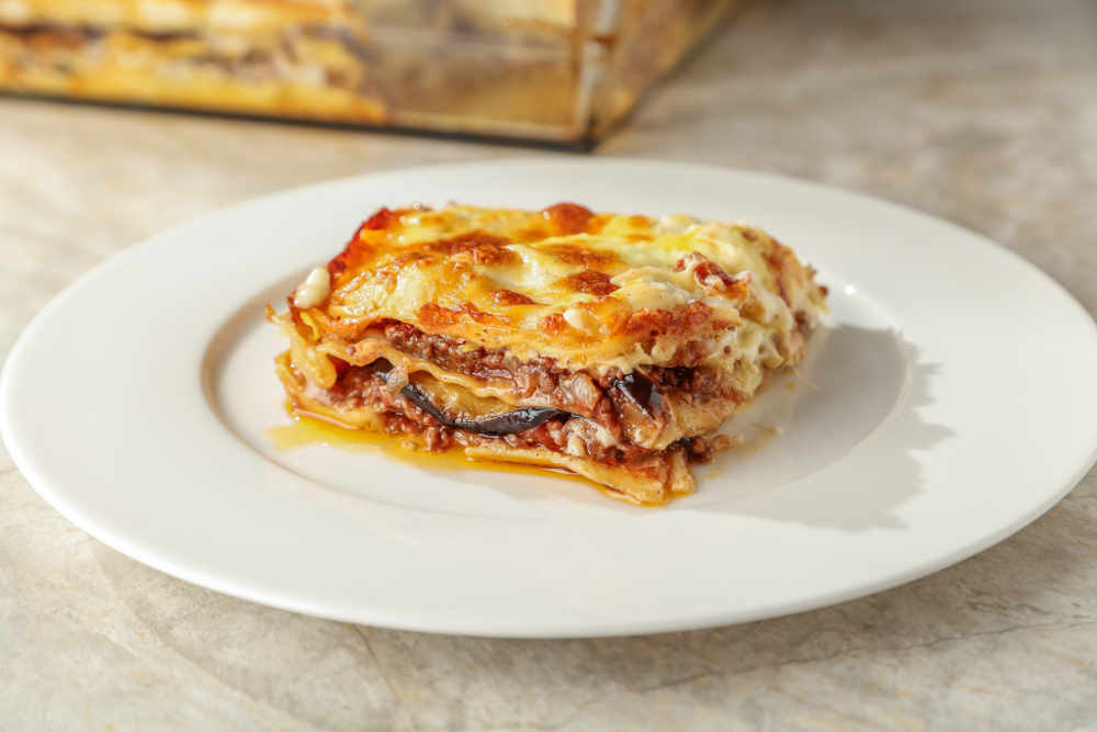 Fırından çıkan lazanyayı 5 – 10 dakika dinlendirin ve dilimleyerek servis edin.