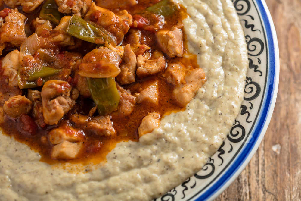 Servis tabağınızın tabanına patlıcan beğendiyi yayın.