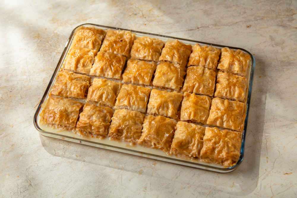 Üzerini tekrar bütün katların aralarını yağlayarak 20 kat daha baklava yufkası olacak şekilde dizin.