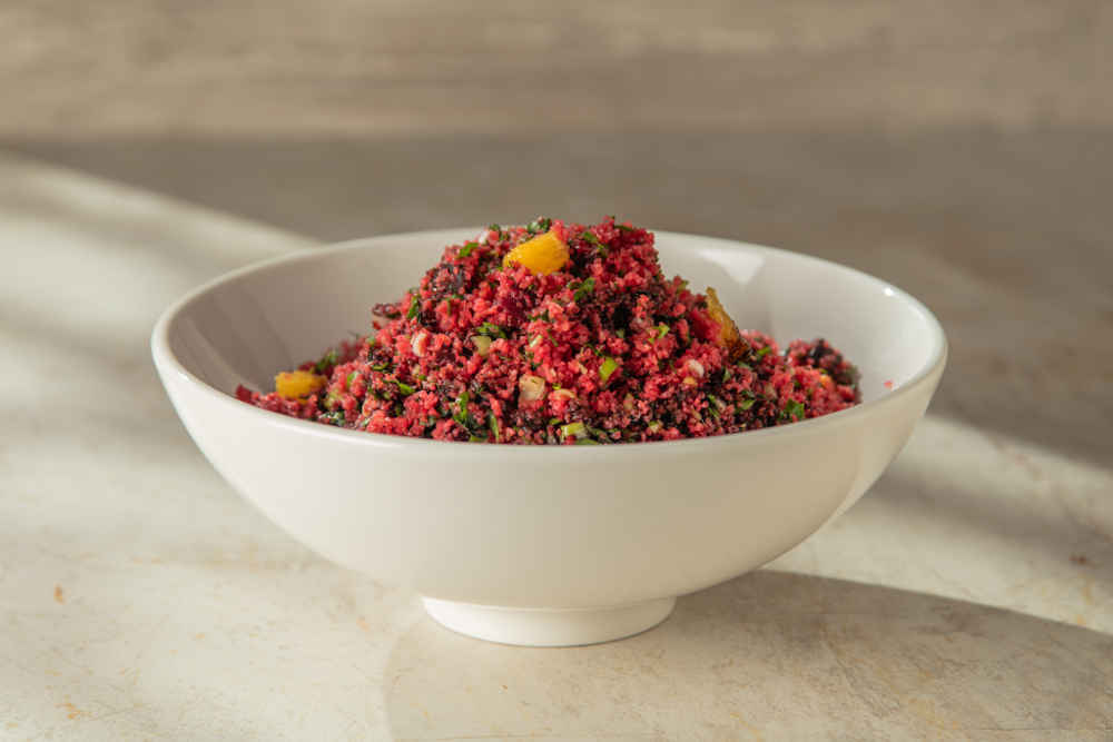 İnce bulguru bir karıştırma kabına alın ve kaynattığınız pancarlı suyu ince bulgurun ekleyip, üzerini bir kağıt havluyla kapatın ve şişmesini bekleyin.