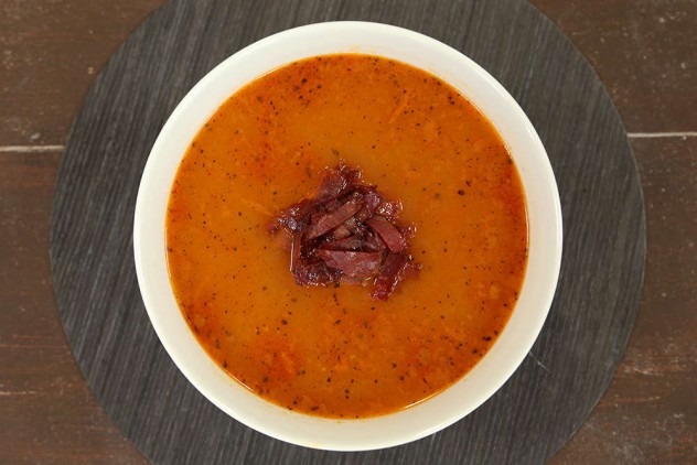 Çorbayı servis kasesine alın ve üzerine pastırmaları ekleyerek servis edebilirsiniz.