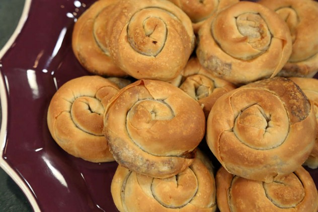 Her bir bezeyi unlanmış tezgahta açabildiğiniz kadar yuvarlak şekilde incecik açın ve 4 eşit üçgene bölün. Bir fırça yardımıyla hamura tereyağı sürün. Geniş kenarlarına hazırladığınız iç harçtan koyun ve rulo şeklinde sarıp içe doğru kıvırıp, gül şekli verin. Hazırladığınız börekleri fırın tepsisine dizin ve 190 derecede önceden ısıtılmış fırında 30 – 35 dakika pişirin.
