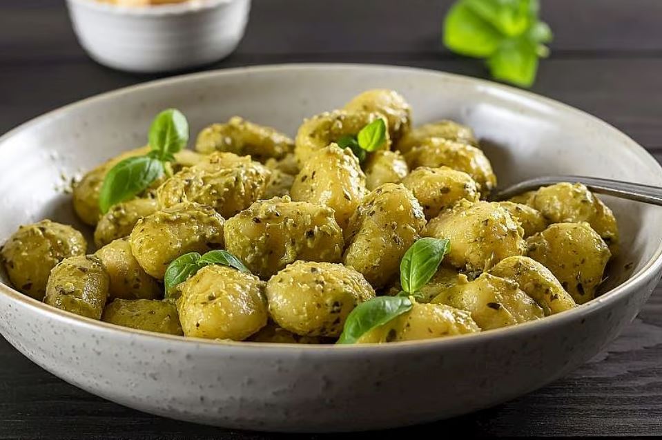 Gnocchi, genellikle patates, un ve yumurta ile hazırlanan küçük ve yumuşak hamur parçalarından oluşan geleneksel bir İtalyan makarnasıdır. Özellikle fesleğen, parmesan peyniri ve zeytinyağı ile hazırlanan pesto sosu ile servis edildiğinde oldukça aromatik ve dengeli bir lezzet ortaya çıkar.