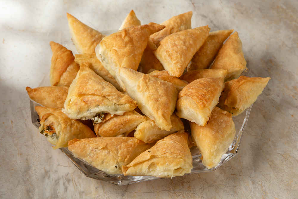 Yufkanın uç kısmına peynirli harçtan koyun ve muska olacak şekilde sarın.