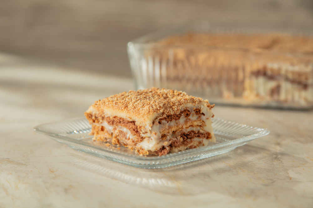 Bir kat sade, bir kat kakaolu bisküvi dizebilirsiniz.