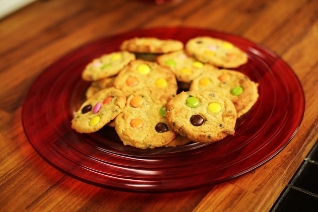 En son üzerlerine renkli çikolata drajeleri koyup parmağınızla bastırın.