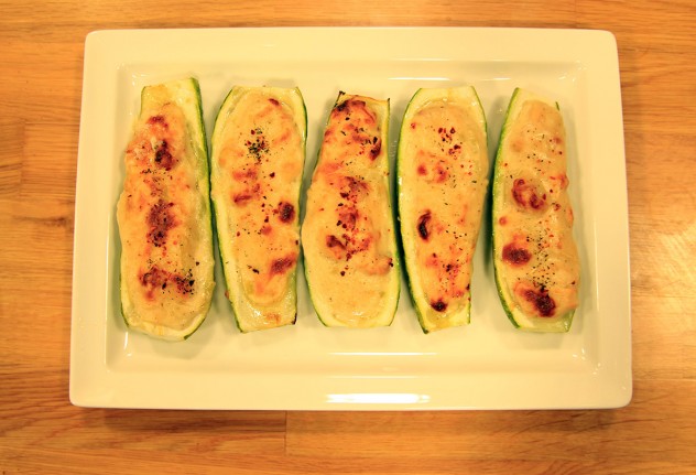 Kabakları uzunlamasına 2’ye bölün, alt kısmından ince bir parça alın ki kabaklar tepside düzgün dursun. Kabakların içindeki çekirdekli kısmını bir kaşık yardımıyla alıp içlerinin havuz gibi olmasını sağlayın ve kabakları fırın tepsinize alın.
