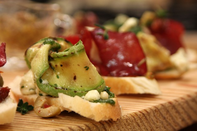 Kabakları ince şeritler halinde bütün olarak boylamasına kesin. İzli tavada yağ sürmeden kabakların her iki tarafını ızgaralayın.