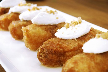 Servis tabaklarına alıp, kaymak ve cevizle süsleyin.